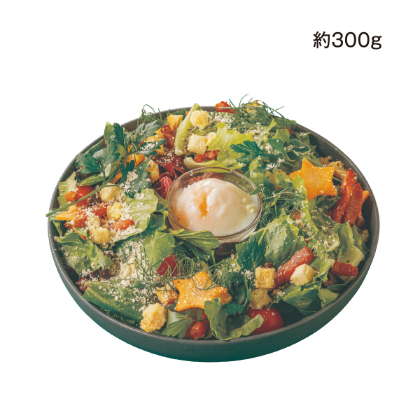 リースのように彩り豊かに仕上げた、クリスマス限定のシーザーサラダ。中央にはとろりと濃厚な温泉卵を添え、食卓を華やかに演出します。チキン料理との相性も抜群!